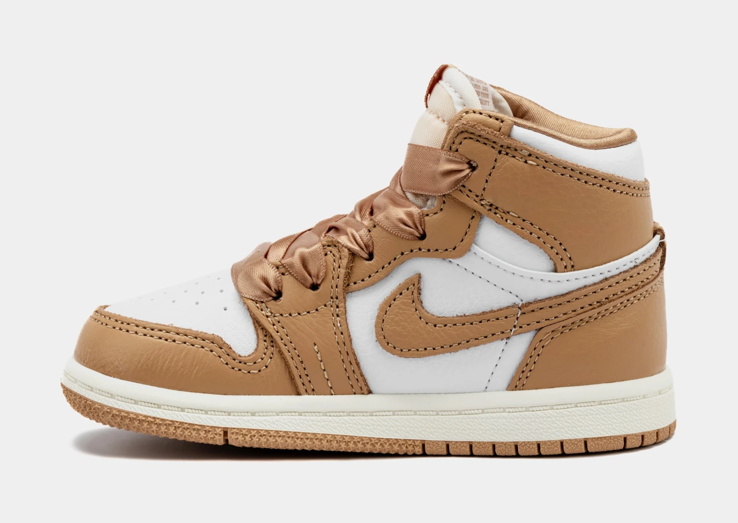 Dressed in a Praline, White, and Sail color scheme. This offering of the Air Jordan 1 comes constructed with premium leather, mesh tongues and satin liners to give off that luxurious vibe. It features a White base with Tan overlays detailed with satin-like flat laces. Tan “Nike Air” tongue tags, White “Wings” ankle logo atop a Sail midsole and Tan rubber outsole completes the design.