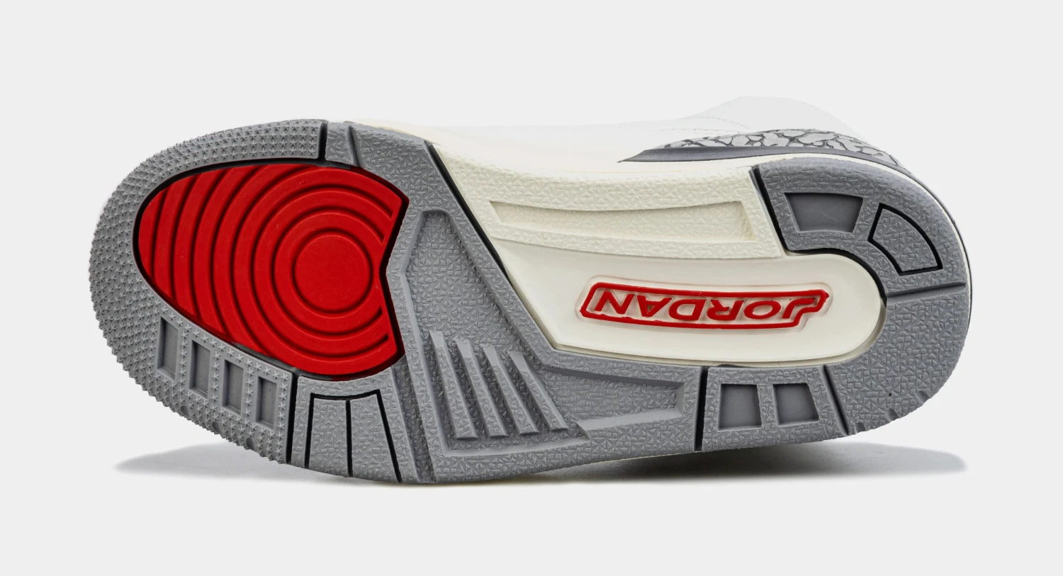 Dressed in a Summit White, Fire Red, Black, and Cement Grey color scheme. This offering of the Air Jordan 3 will look like the OG 1988 pair, but with a vintage/aged-look.