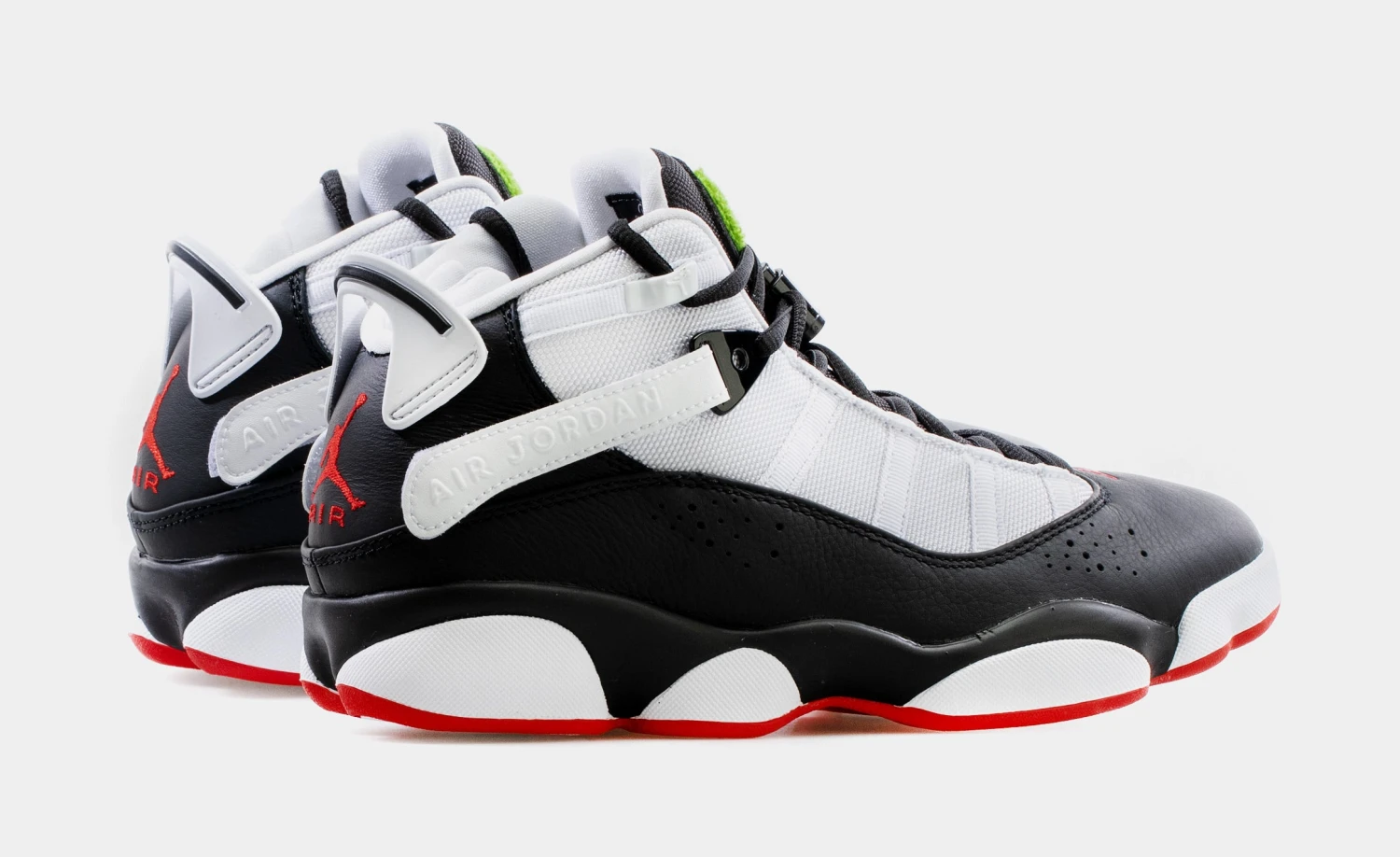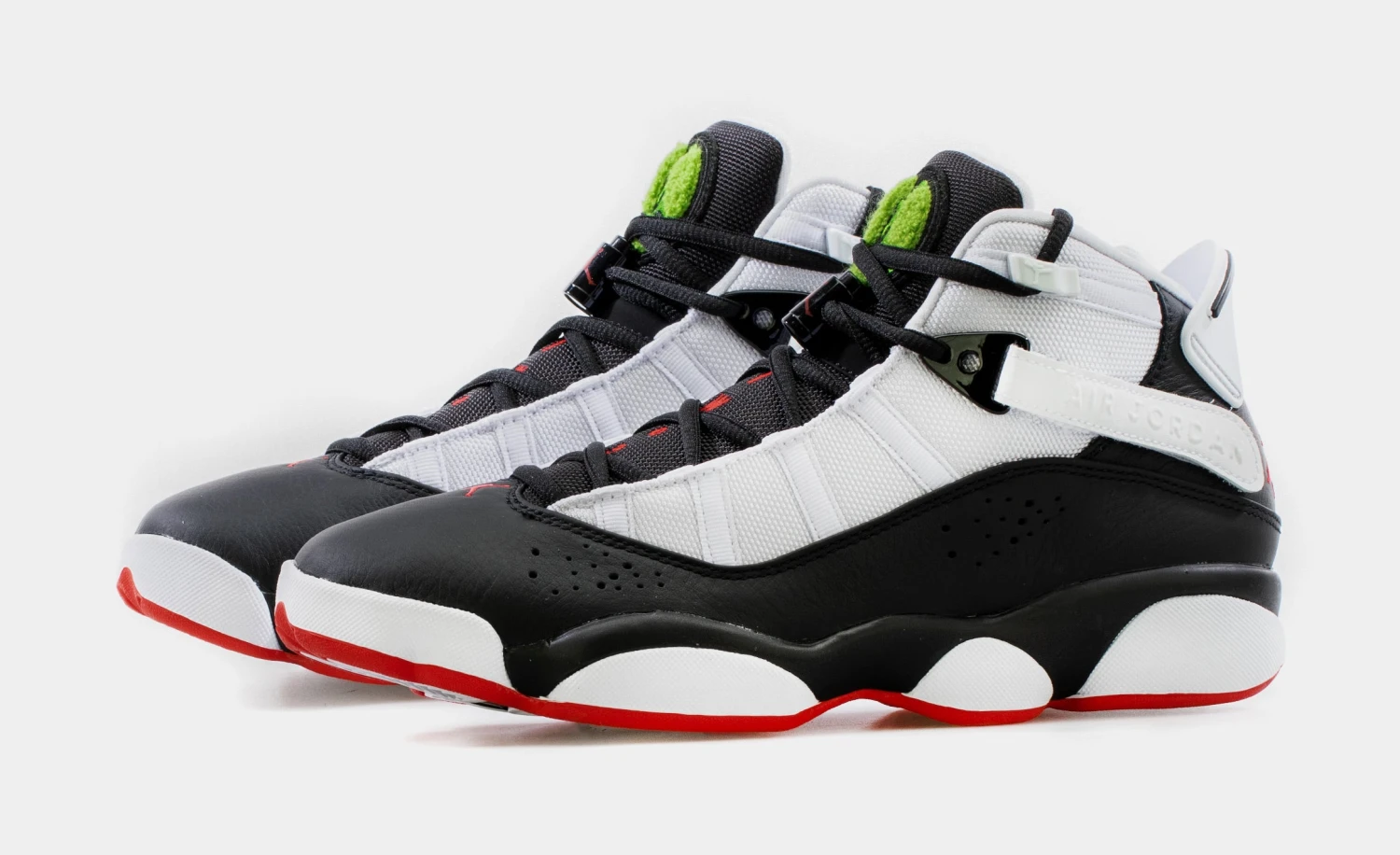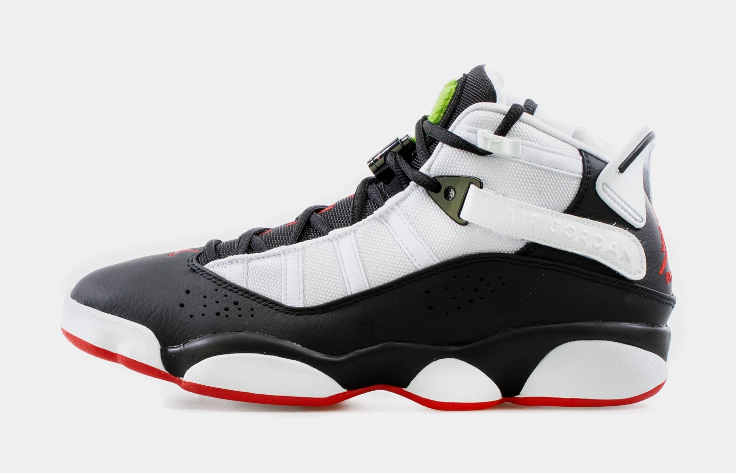 The Jordan 6-Rings incorporates key features from each shoe that MJ wore while stacking up the Championship rings for Chicago. This shoe is made with a leather and synthetic upper that houses a huarache-style inner sock and a fuzzy tongue logo. The upper also features an adjustable strap for a customizable fit. The outsole is a combination of solid and clear rubber, which created performance traction with superior style.