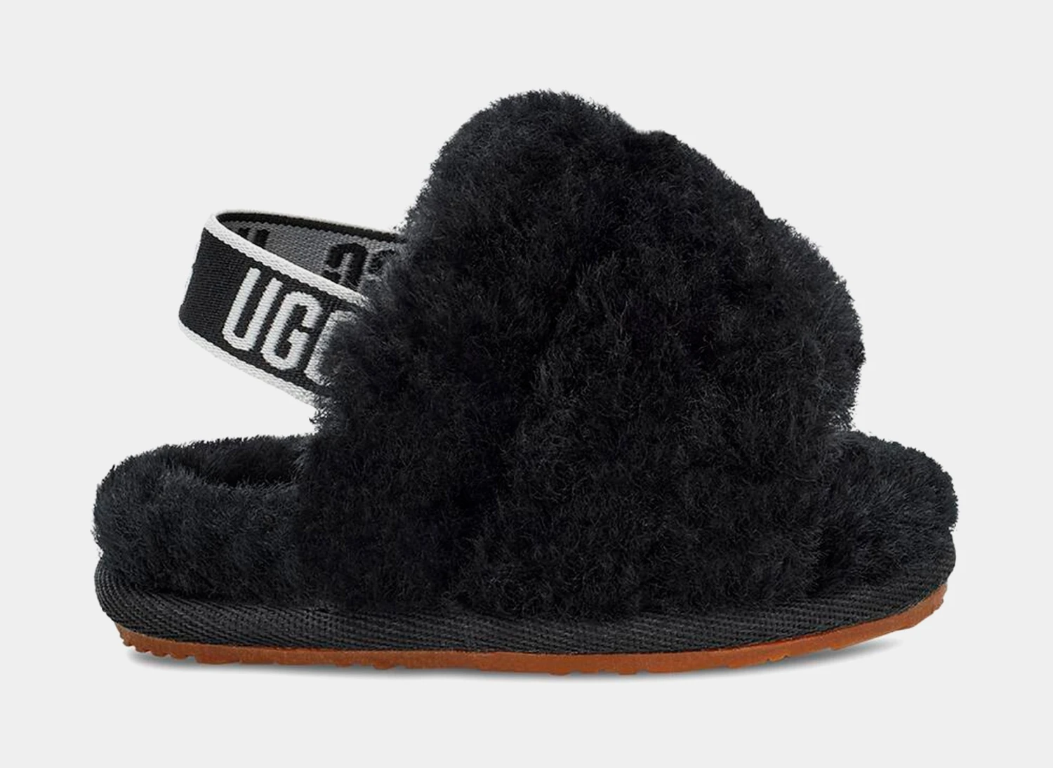 The Fluff Yeah is as good as it sounds, combining a slipper and sandal into one adorable statement shoe. Soft sheepskin wraps the plush band, while a lightweight sole makes it easy to run and play.
